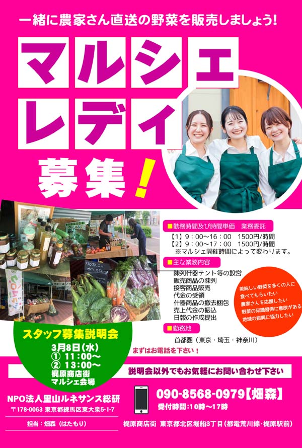 併行してマルシェの実務を担当するスタッフも募集しています。